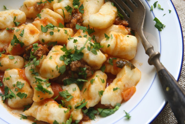 Today was the first day in several weeks that I've had a big enough block of time to dig into cooking a meal from the Vatican City. Delving into recipe ideas, I came across several for potato gnocchi with Roman gravy. Never having made gnocchi, I decided to give this a try, and boy, was I glad. The recipe was easy, fun to make and the gravy was absolutely delicious. I used a small top round roast which I ground in my food processor. The result was a gravy with wonderful flavor and texture. My husband came home from work and promptly scoffed down an entire bowl - which I will just call dinner. If you've never tried making these and have kids, it makes a great family cooking project. If you don't have sweet little ones underfoot, make them for the fun of it and throw down a big old bowl along with a glass of hearty chianti classico. Ciao!