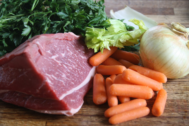 Roman Gravy: Top round beef, carrots, onion, celery and parsley