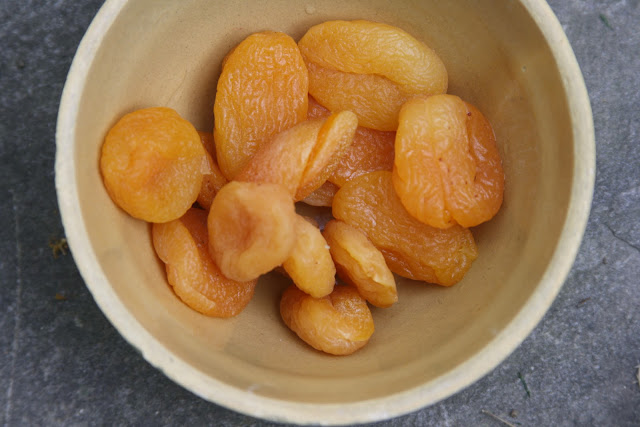 If using dried apricots, reconstitute in sherry overnight - otherwise, use right from the box as is