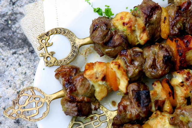 Sosaties (Grilled Marinated Meat with Apricots) - Adapted from Global Gourmet